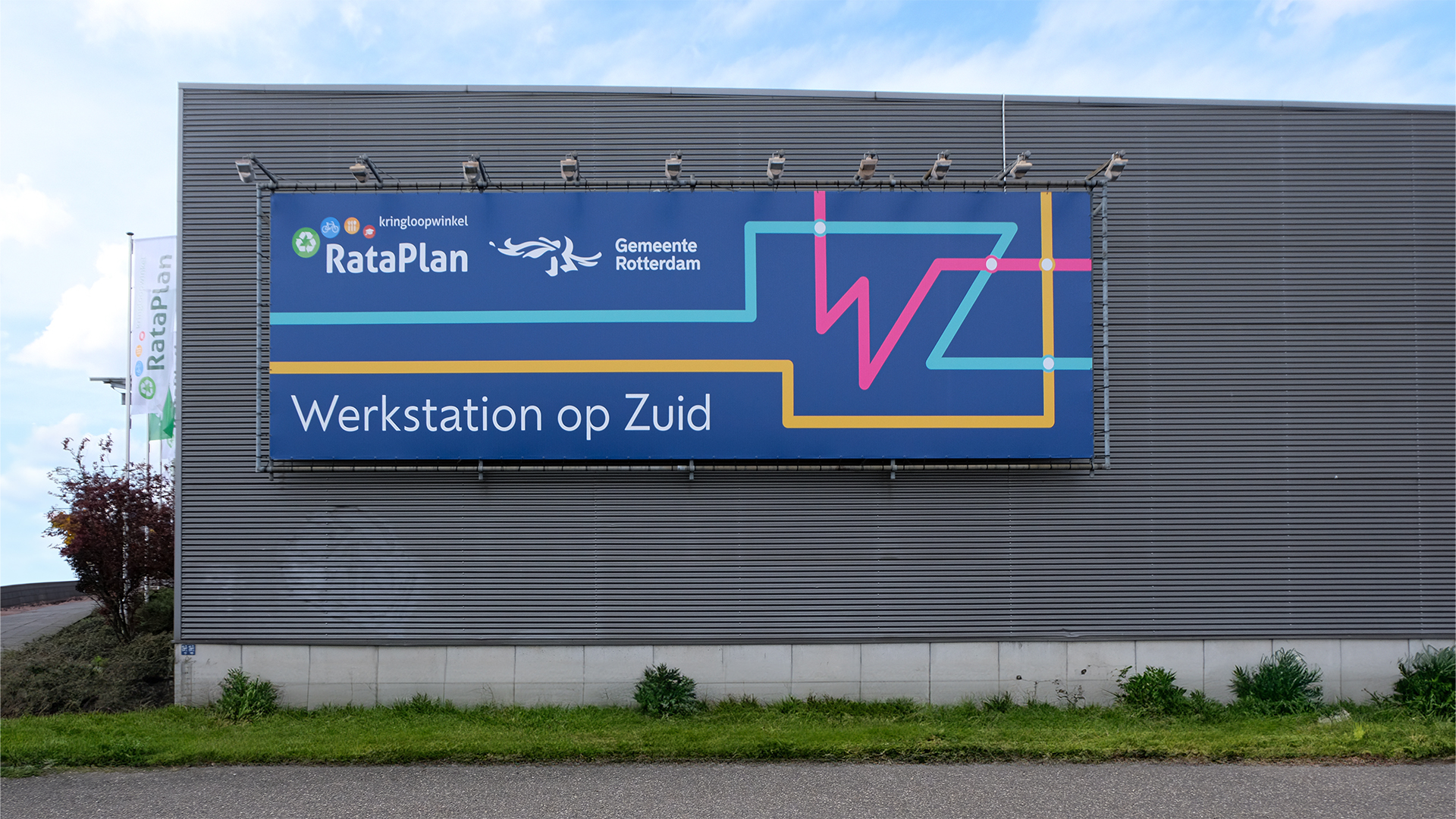 Werkstation op Zuid heeft bijvoorbeeld een wayfinding die is geïnspireerd op metrolijnen, waar RataPlan, Rotterdam Inclusief en gemeente Rotterdam verschillende ‘sporen’ zijn. Elke partner representeert een andere lijnkleur. Zo is het duidelijk voor de bezoeker waar ze moeten zijn en kunnen we weer samen vooruit!